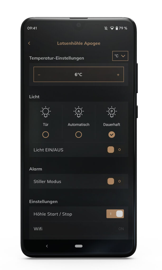 Passen Sie die Parameter Ihres Weinkühlschranks jederzeit und von überall aus an – ganz bequem über Ihr Smartphone.