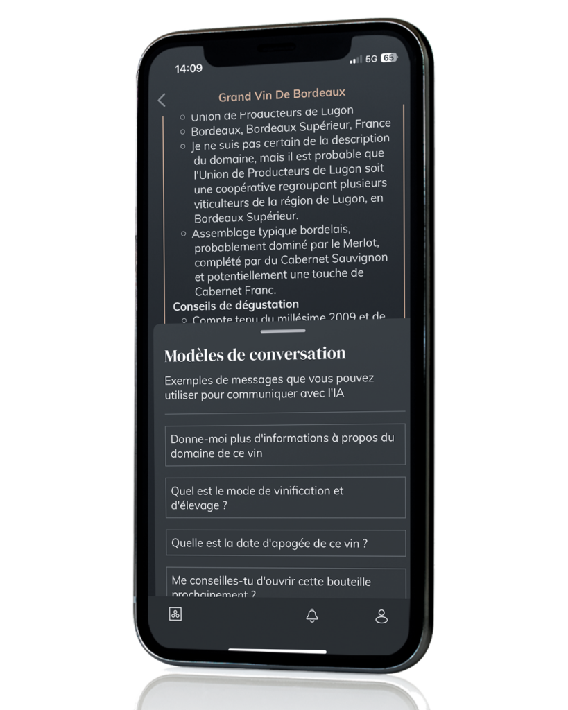 Posez vos questions directement dans l’application, comme avec un sommelier personnel.